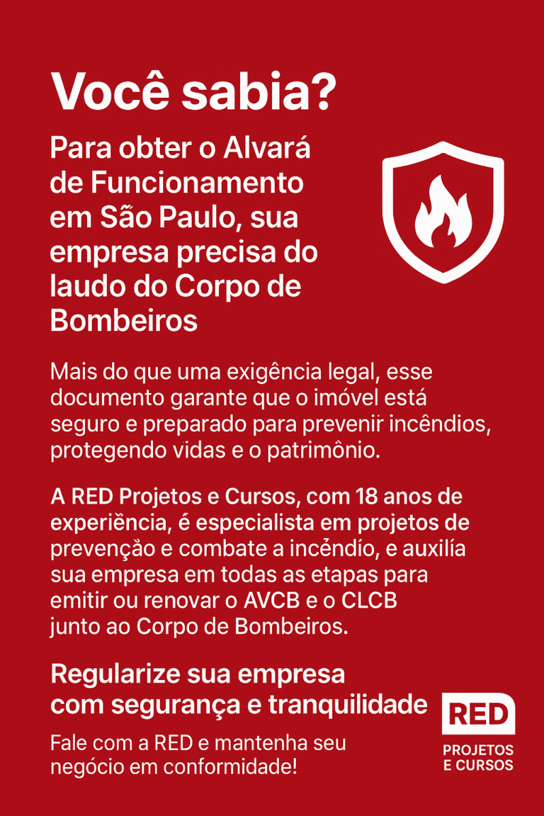 Com 18 anos de experiência em prevenção e combate a incêndio, a RED Projetos e Cursos é referência na elaboração e execução de projetos de incêndio e no suporte completo para a obtenção ou renovação do AVCB São Paulo e CLCB.